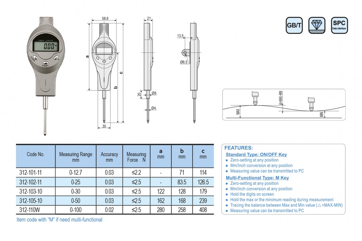 Описание товара: Индикатор цифровой ИЧЦ 0-50мм шкала 0.01мм GL
