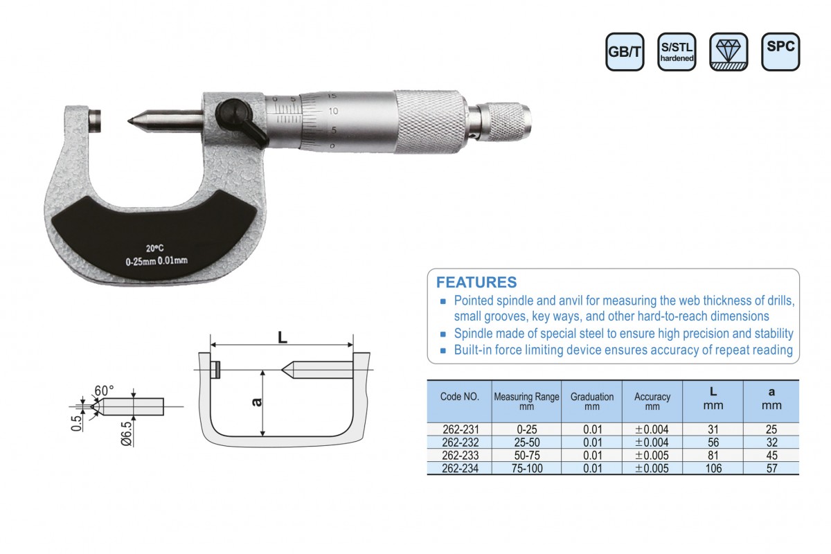 Микрометр проволочковый МП-25 0-25мм 0.01мм GL
