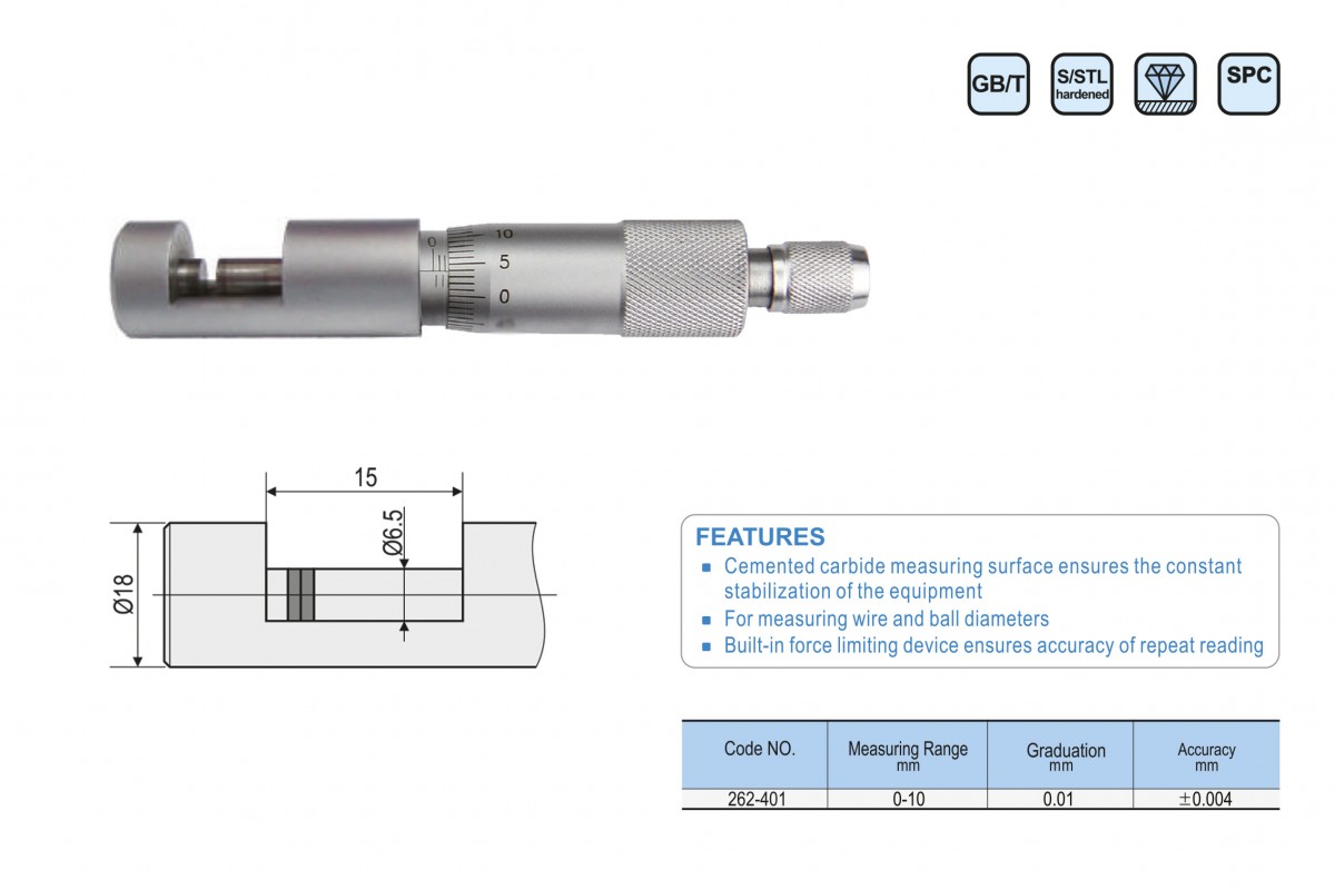 Описание товара: Микрометр проволочковый МП-10 0-10мм 0.01мм GL