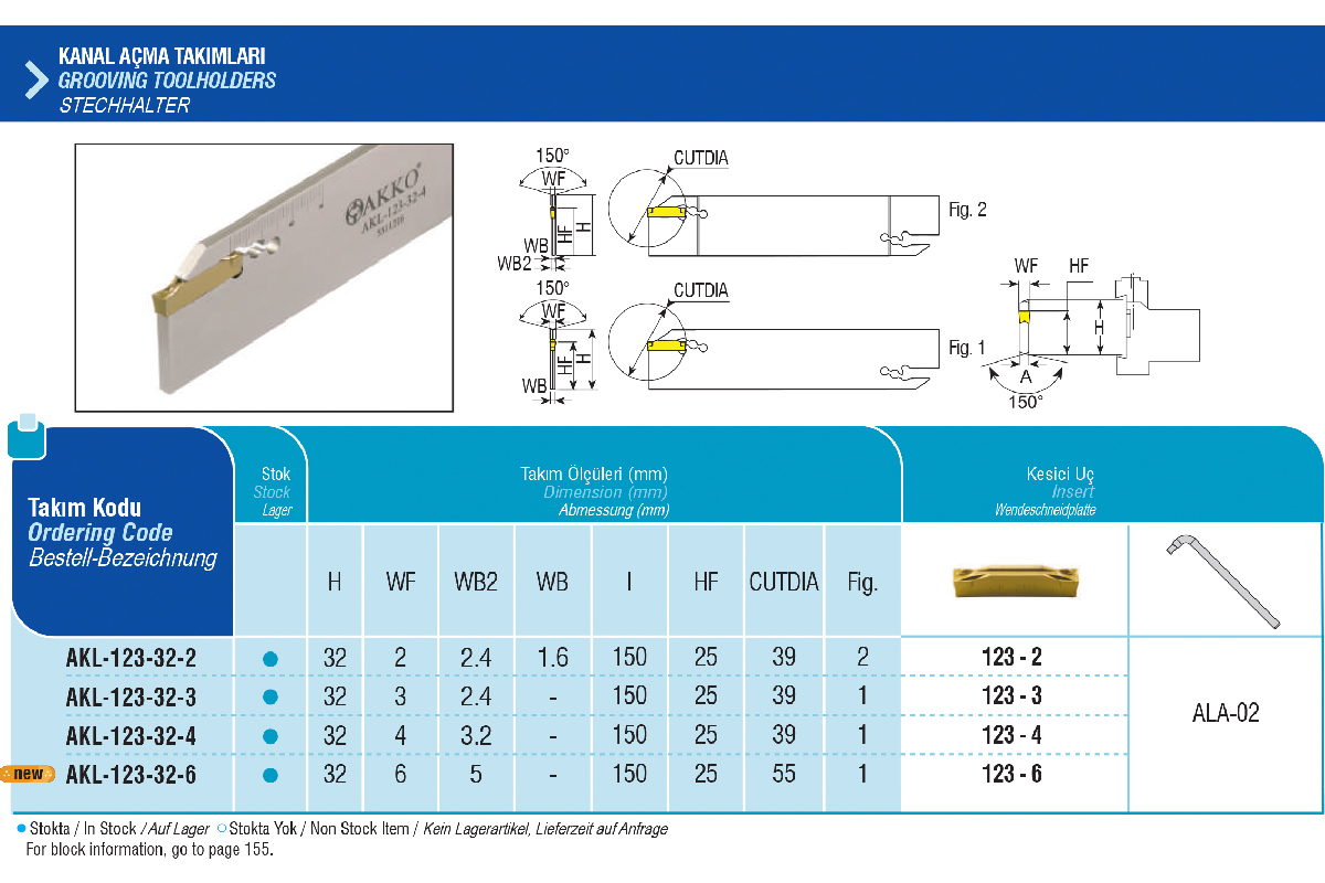 Характеристики товара: Сменный отрезной нож AKL-123-32-4 AKKO