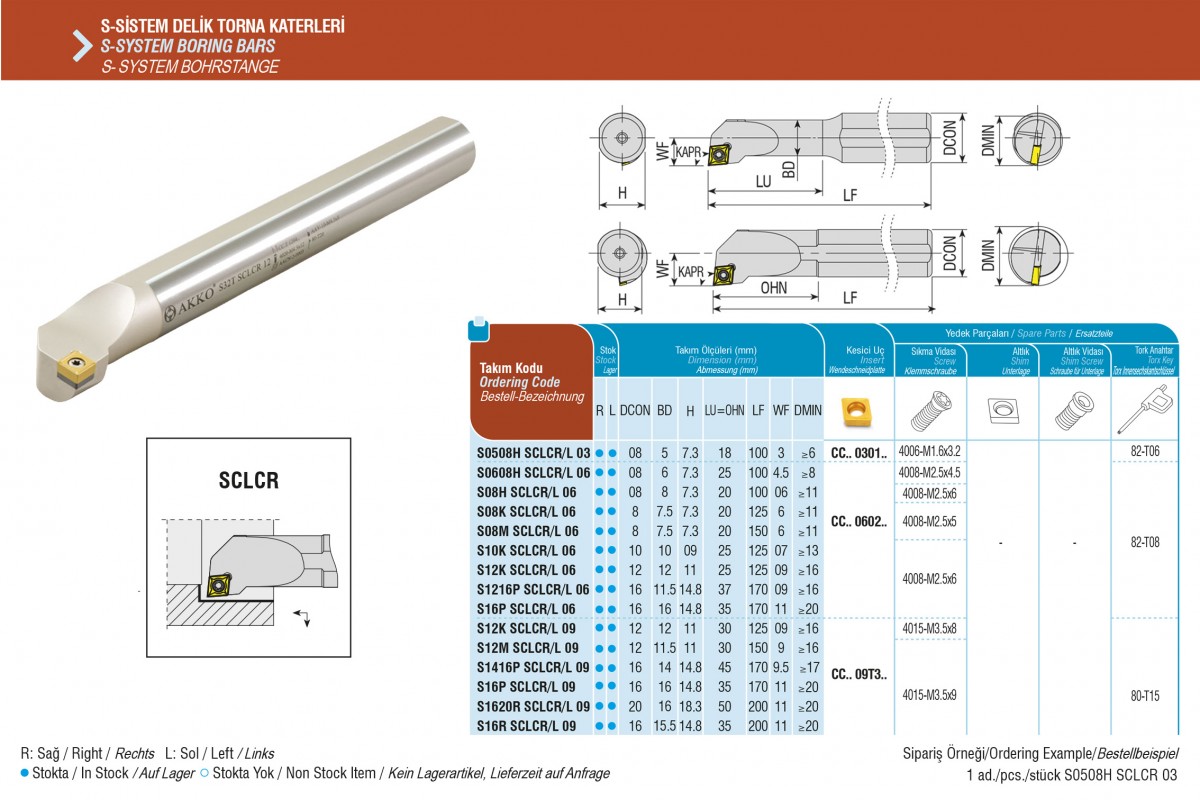 Характеристики товара: Резец токарный расточной S12M SCLCL 09 под пластину CCMT 09T3 державка AKKO