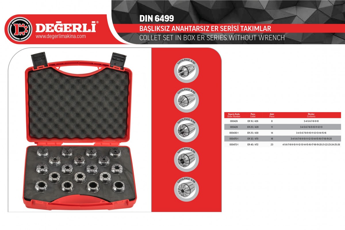 Характеристики товара: Набор цанг ER32 от 3 до 20 шаг 1мм 18ед. в кейсе DEGERLI