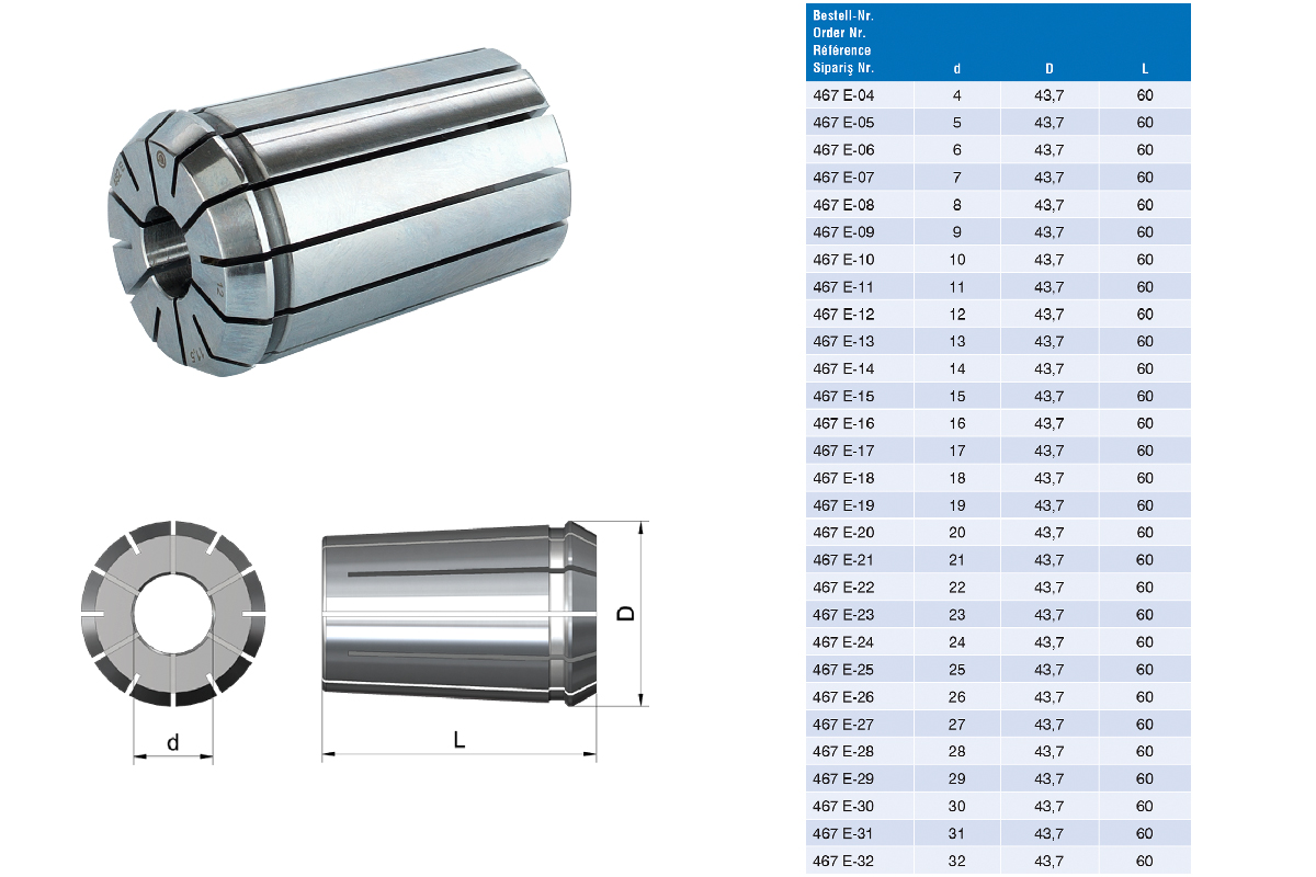 Характеристики товара: Цанга прецизионная типа OZ32 467 d32-31,5мм по DIN6388 к цанговому патрону EROGLU