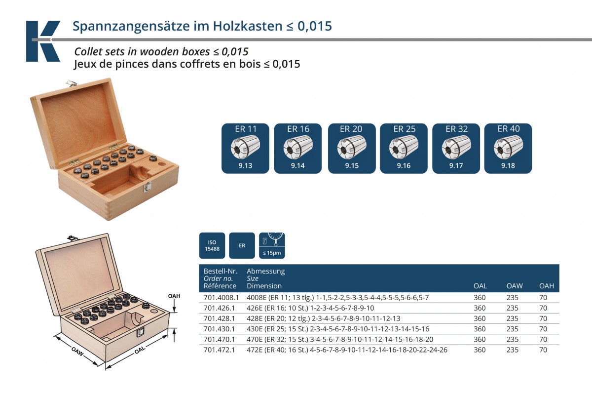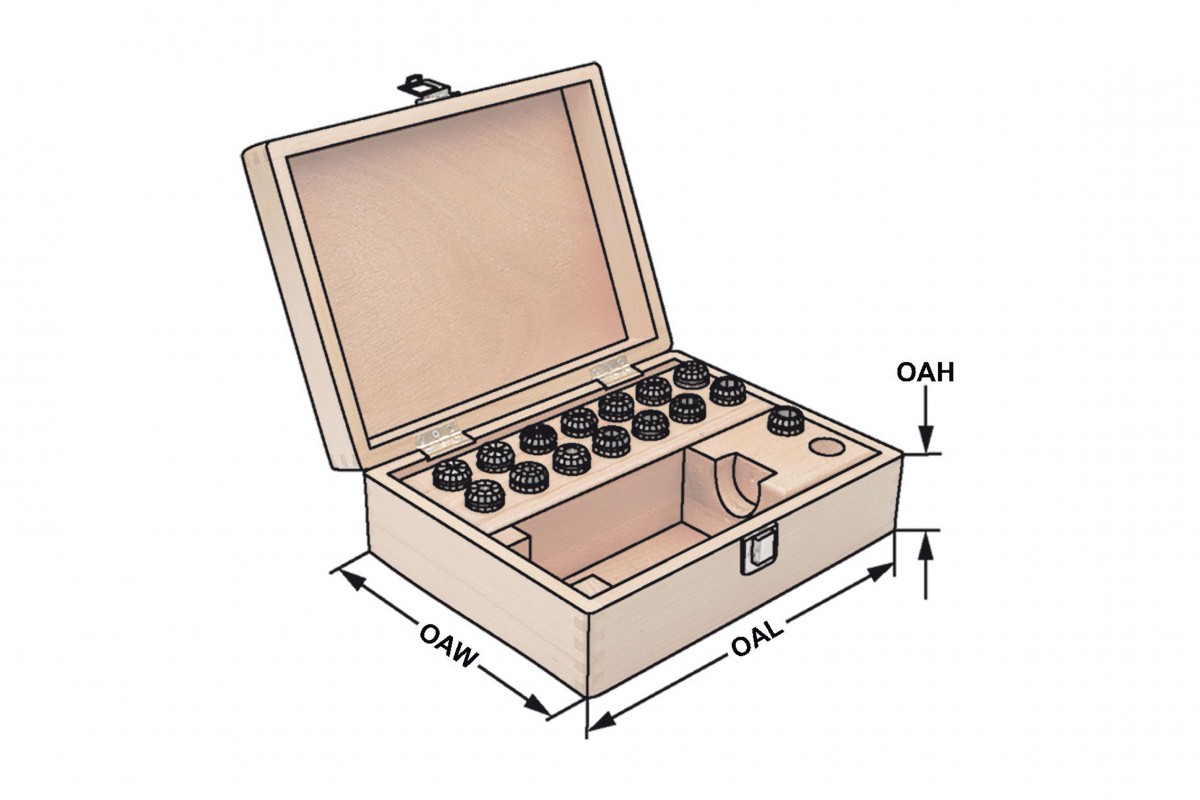 Характеристики товара: Набор цанг ER20 d2-13мм 0.015мм шаг 1мм 12ед. в деревянном кейсе KEMMLER