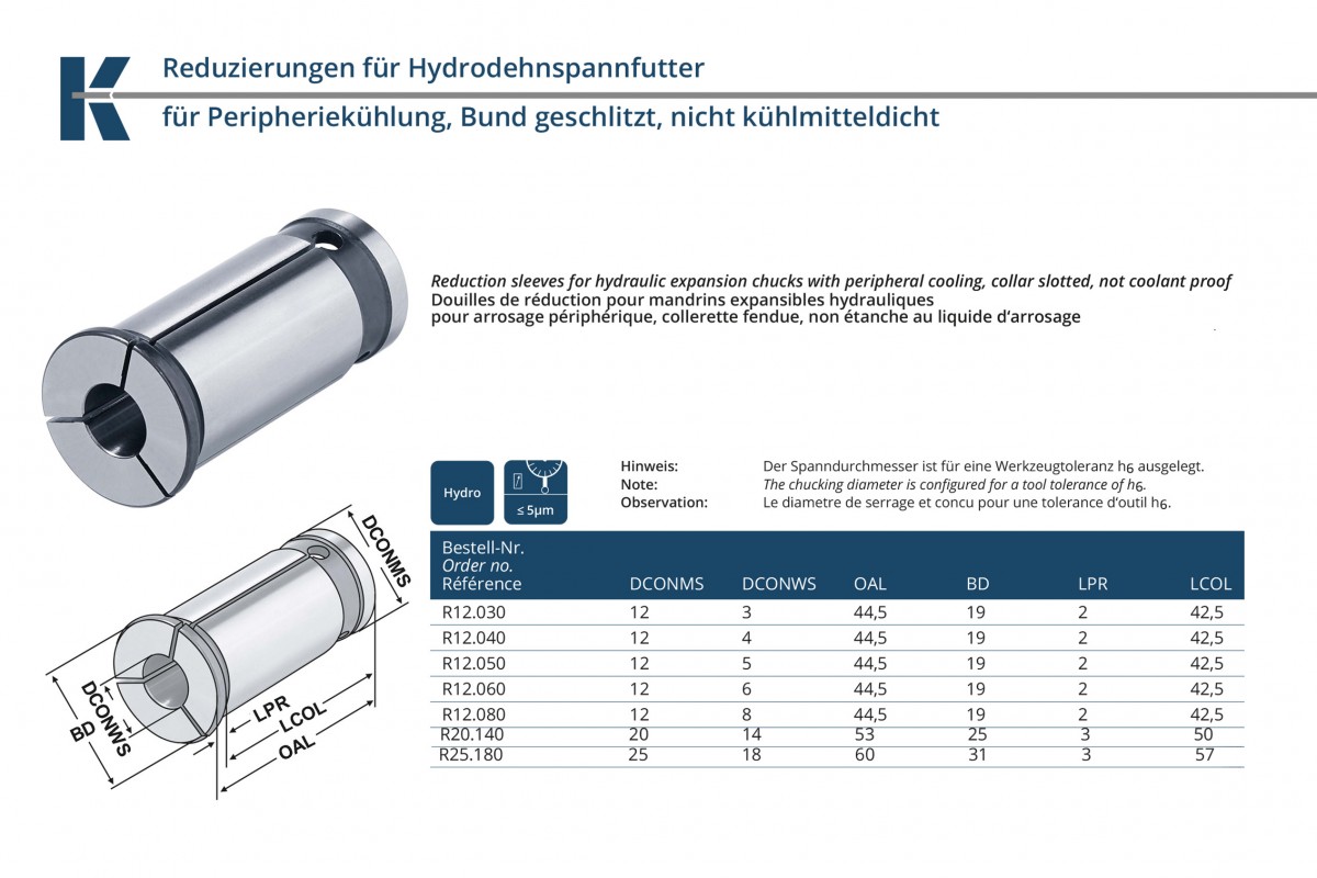 Характеристики товара: Цанга прецизионная типа R12 d3мм к гидравлическому патрону KEMMLER