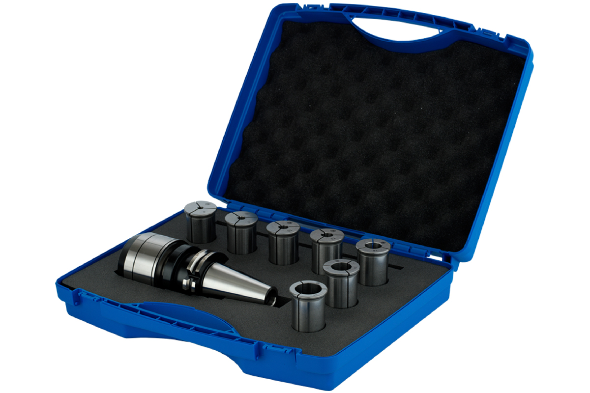 Набор цанг d6-8-10-12-16-20-25мм с силовым фрезерным патроном SK 40 с ключом 7ед. в кейсе EROGLU