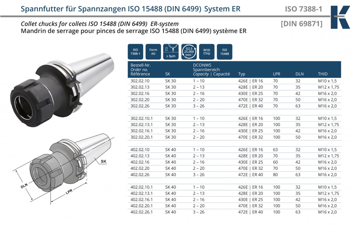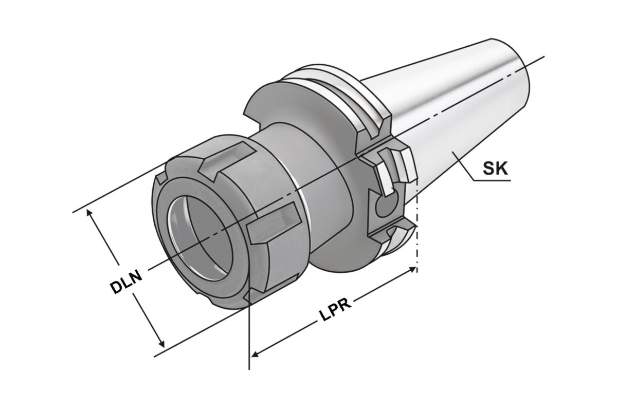 Характеристики товара: Патрон цанговый ультрапрецизионный SK40 35x100мм к цангам ER20 2-13мм DIN69871 форма AD KEMMLER