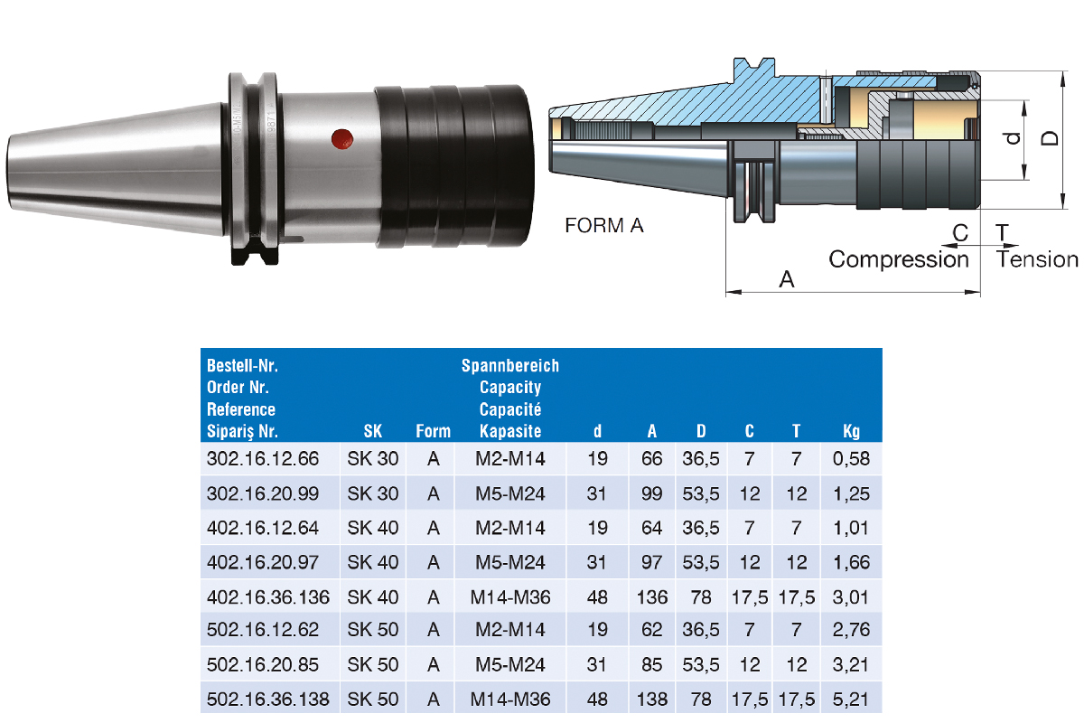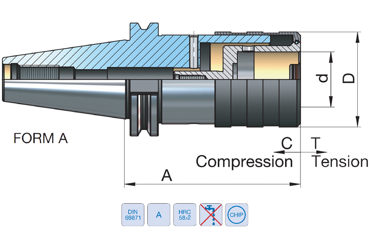 Характеристики товара: Быстросменный резьбонарезной патрон SK 50 M5-M24мм с компенсацией по длине DIN69871 форма AD EROGLU