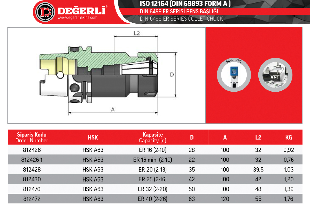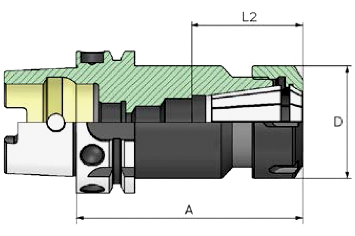 Характеристики товара: Патрон цанговый HSK-A 63 42x100мм к цангам ER25 2-16мм DIN69893-1 форма AD DEGERLI