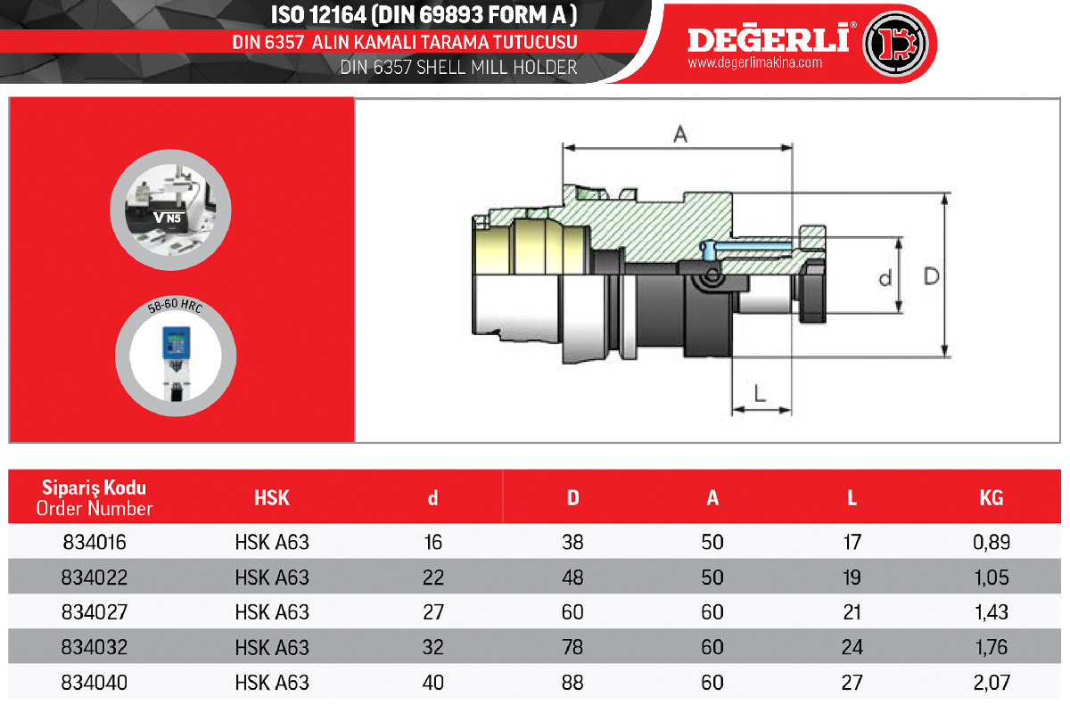 Характеристики товара: Оправка HSK-A 63 для насадных торцевых фрез ATB 22х50мм DIN69893 форма AD DEGERLI
