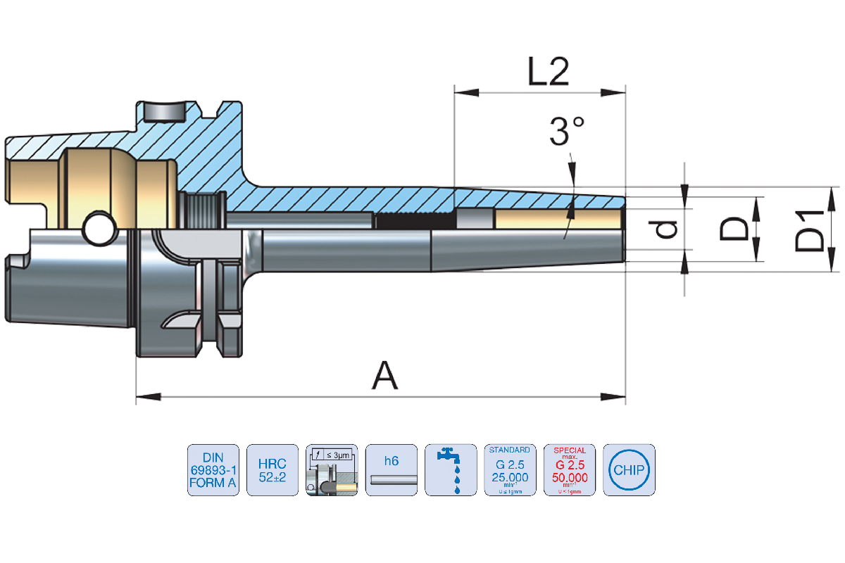 Характеристики товара: Термозажимной патрон HSK-A 100 10x160мм DIN69893-1 форма AD EROGLU