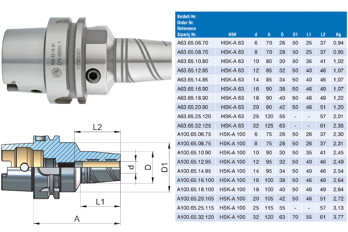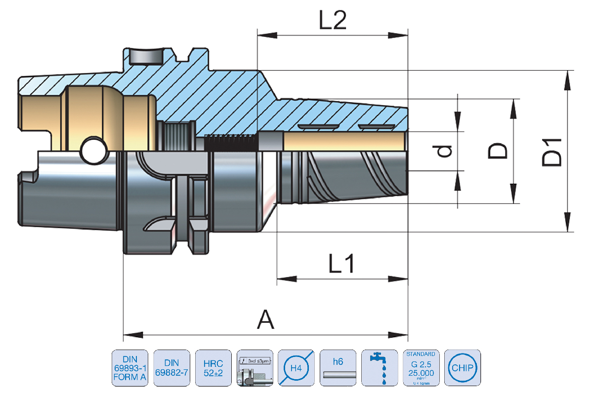 Характеристики товара: Патрон гидропластовый HSK-A 63 16x90мм DIN69893-1 форма AD EROGLU