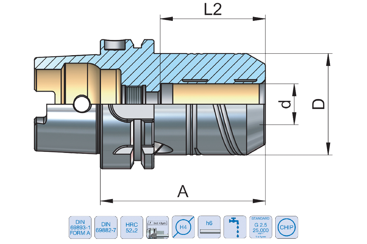 Характеристики товара: Патрон гидропластовый HSK-A 63 20x80мм DIN69893-1 форма AD EROGLU