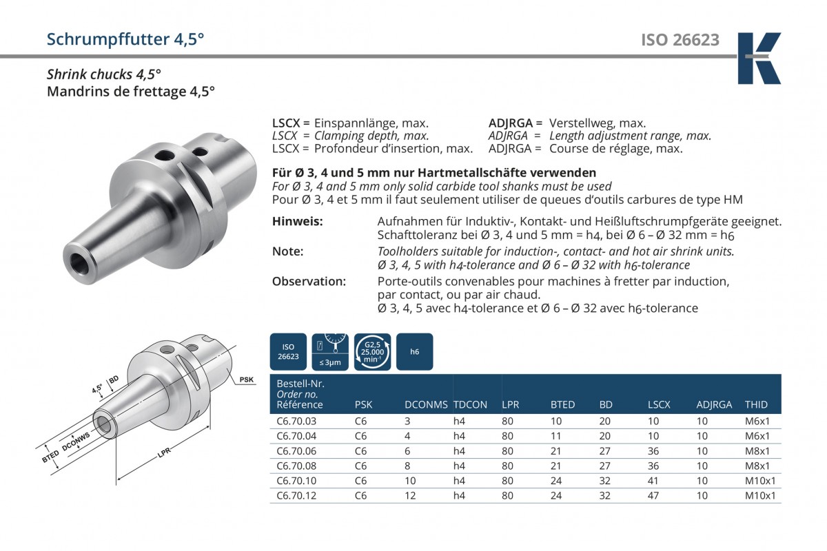 Характеристики товара: Термозажимной патрон EPS/PSK/CAPTO 40/C4 12x75мм ISO 26623-1 форма AD KEMMLER