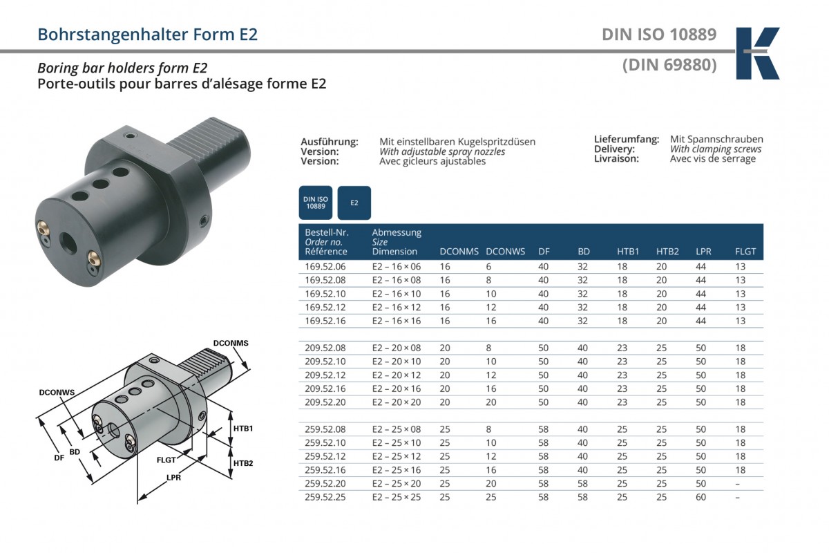 Характеристики товара: Оправка VDI16 для расточных резцов Е2-16х06 по DIN 69880 KEMMLER