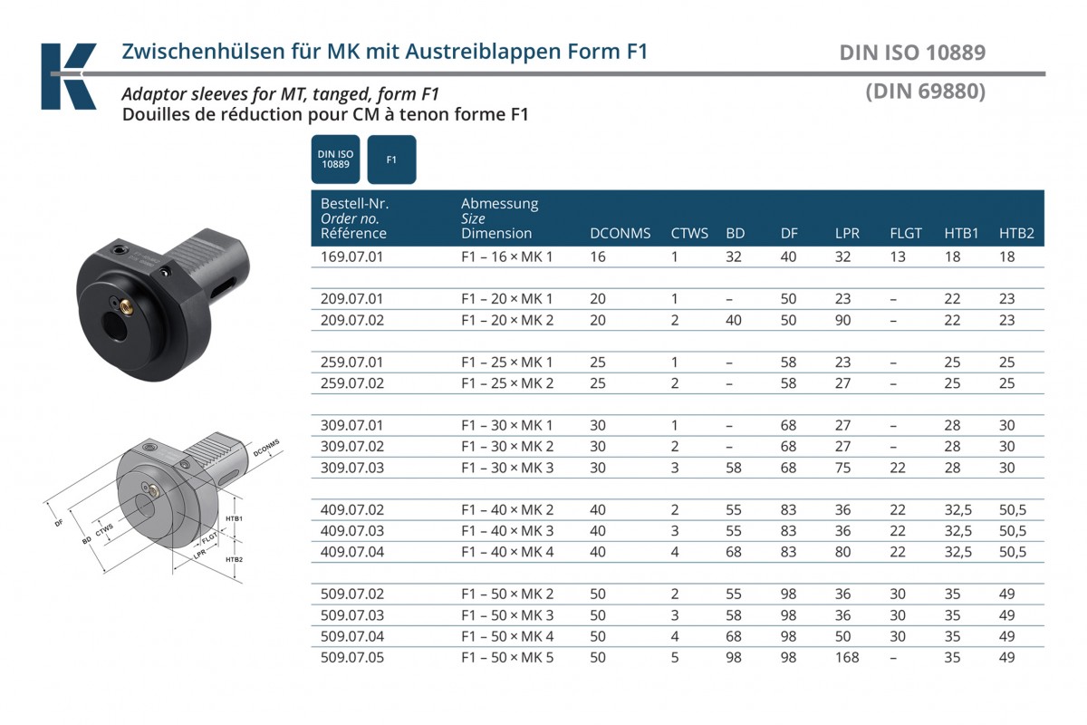 Характеристики товара: Оправка VDI20 переходная для инструмента с хвостовиком конус Морзе с лапкой F1-20хMK1 по DIN 69880 KEMMLER