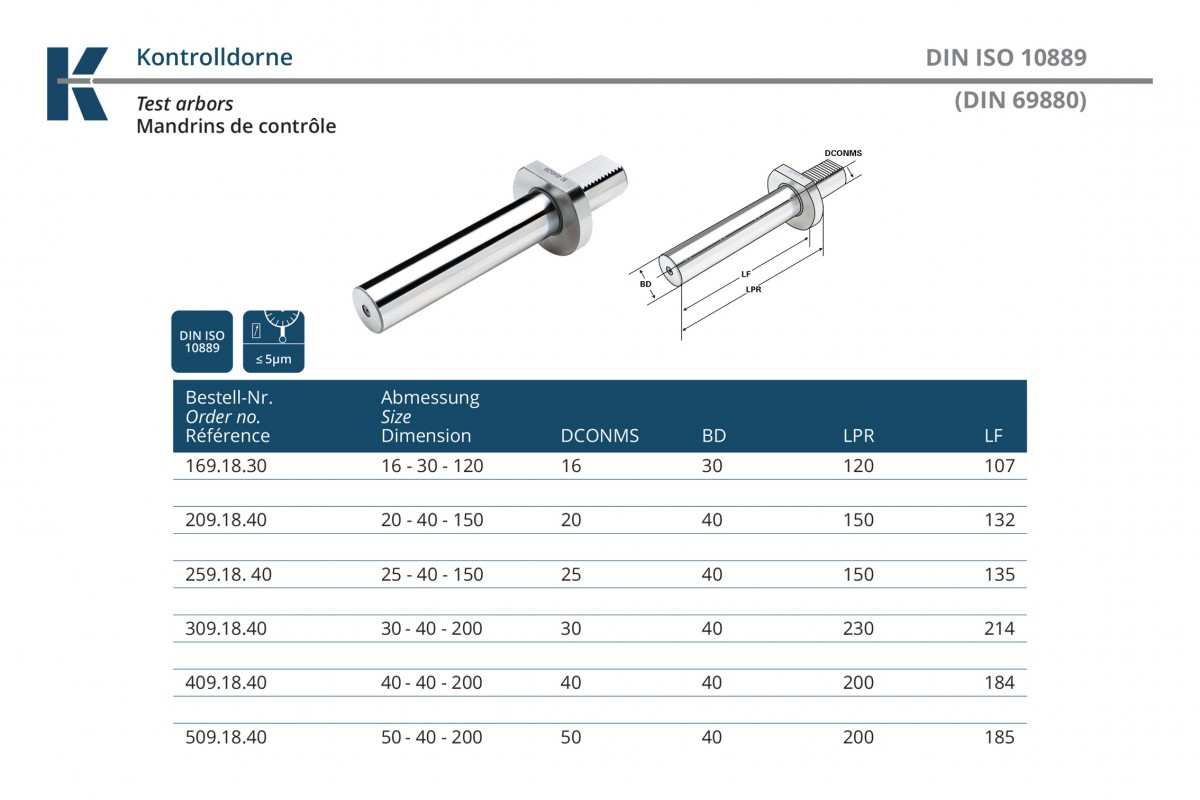 Характеристики товара: Контрольная оправка VDI 40 VDI 40x40x200 по DIN 69880 KEMMLER