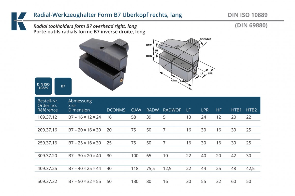 Характеристики товара: Резцедержатель VDI 40 радиальный перевёрнутый удлиненный B7-40х25х44 правый DIN 69880 KEMMLER