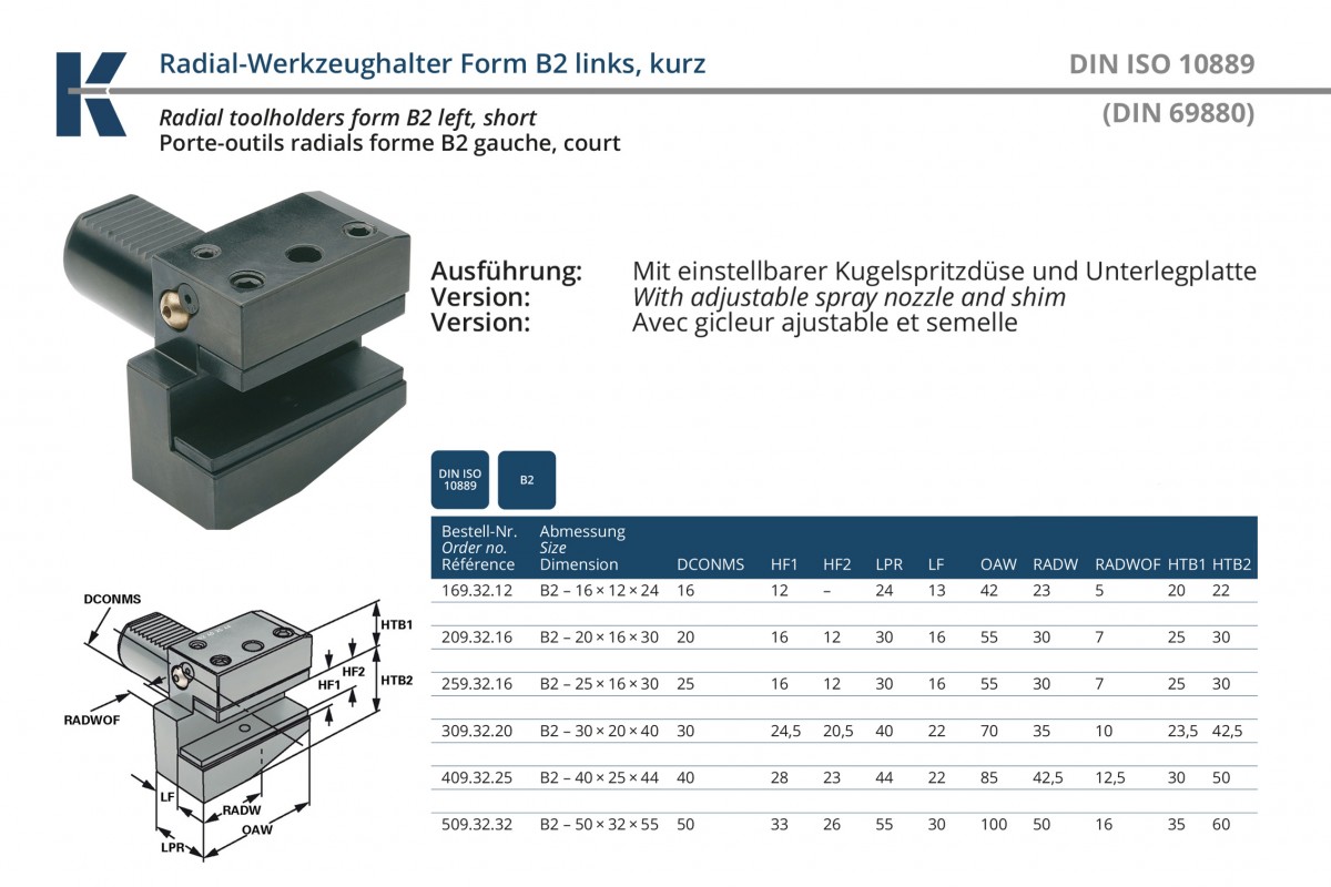 Характеристики товара: Резцедержатель VDI 3425 радиальный короткий B2-50х32х55 левый DIN 69880 KEMMLER
