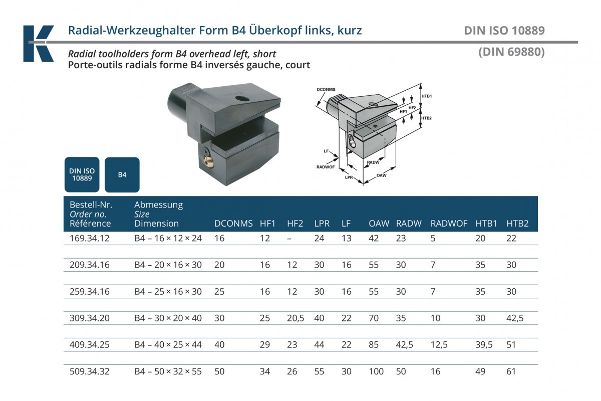 Характеристики товара: Резцедержатель VDI 50 радиальный перевёрнутый короткий B4-50х32х55 левый DIN 69880 KEMMLER