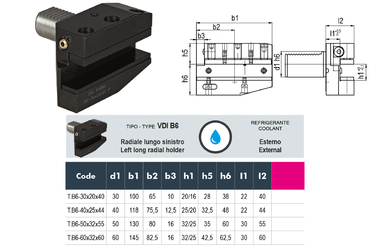 Характеристики товара: Резцедержатель VDI 3425 радиальный удлиненный B6-40х25х44 левый DIN 69880 GERARDI
