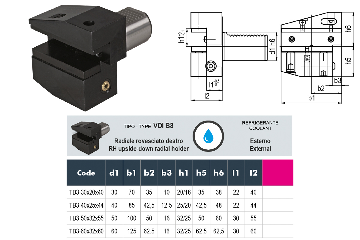 Характеристики товара: Резцедержатель VDI 3425 радиальный перевёрнутый короткий B3-30х20х40 правый DIN 69880 GERARDI