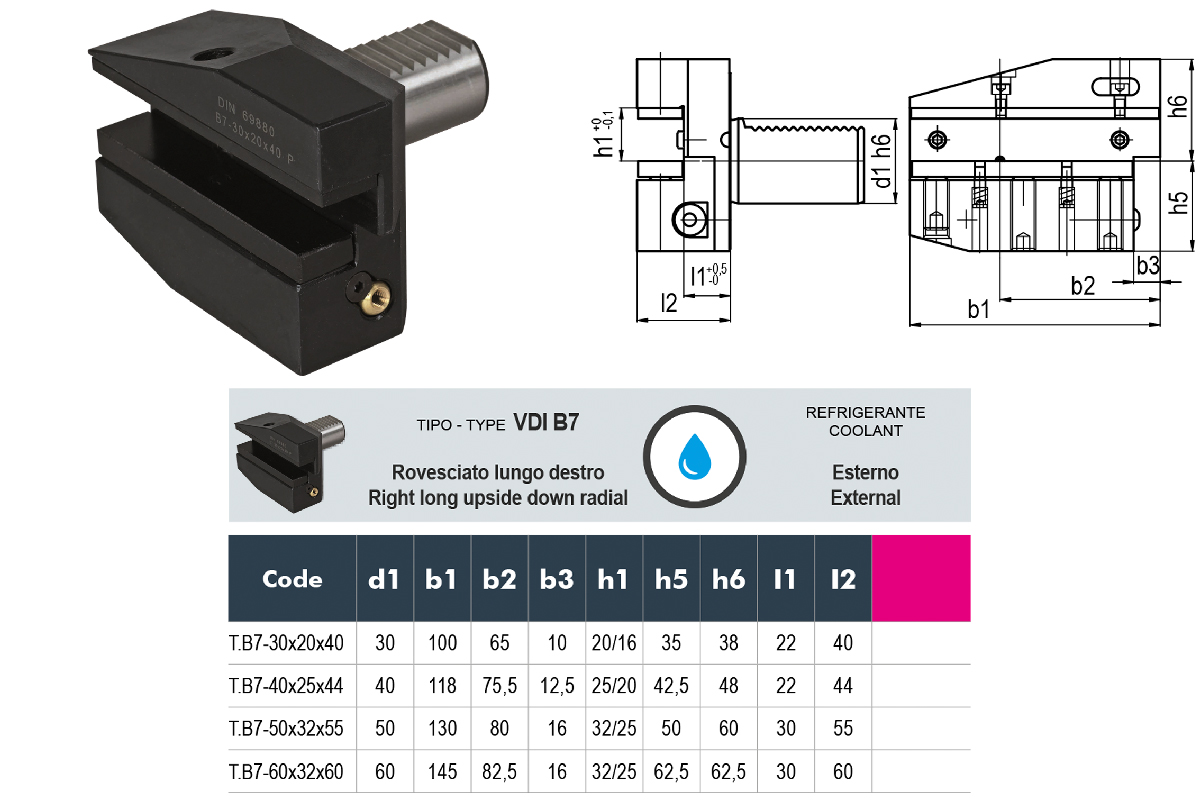 Характеристики товара: Резцедержатель VDI 3425 радиальный перевёрнутый удлиненный B7-40х25х44 правый DIN 69880 GERARDI