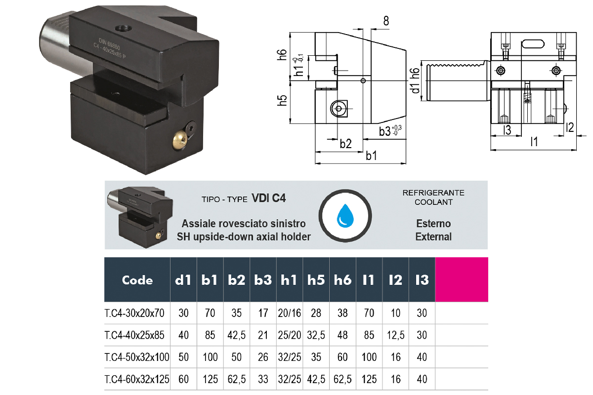 Описание товара: Резцедержатель VDI 3425 аксиальный перевёрнутый C4-40х25 левый DIN 69880 GERARDI