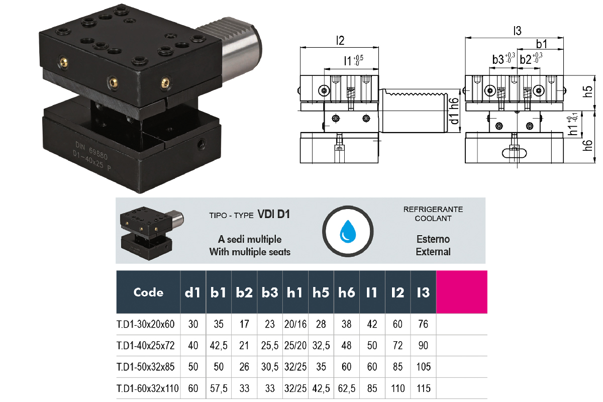 Характеристики товара: Резцедержатель VDI 3425 универсальный D1-40х25x72 по DIN 69880 GERARDI