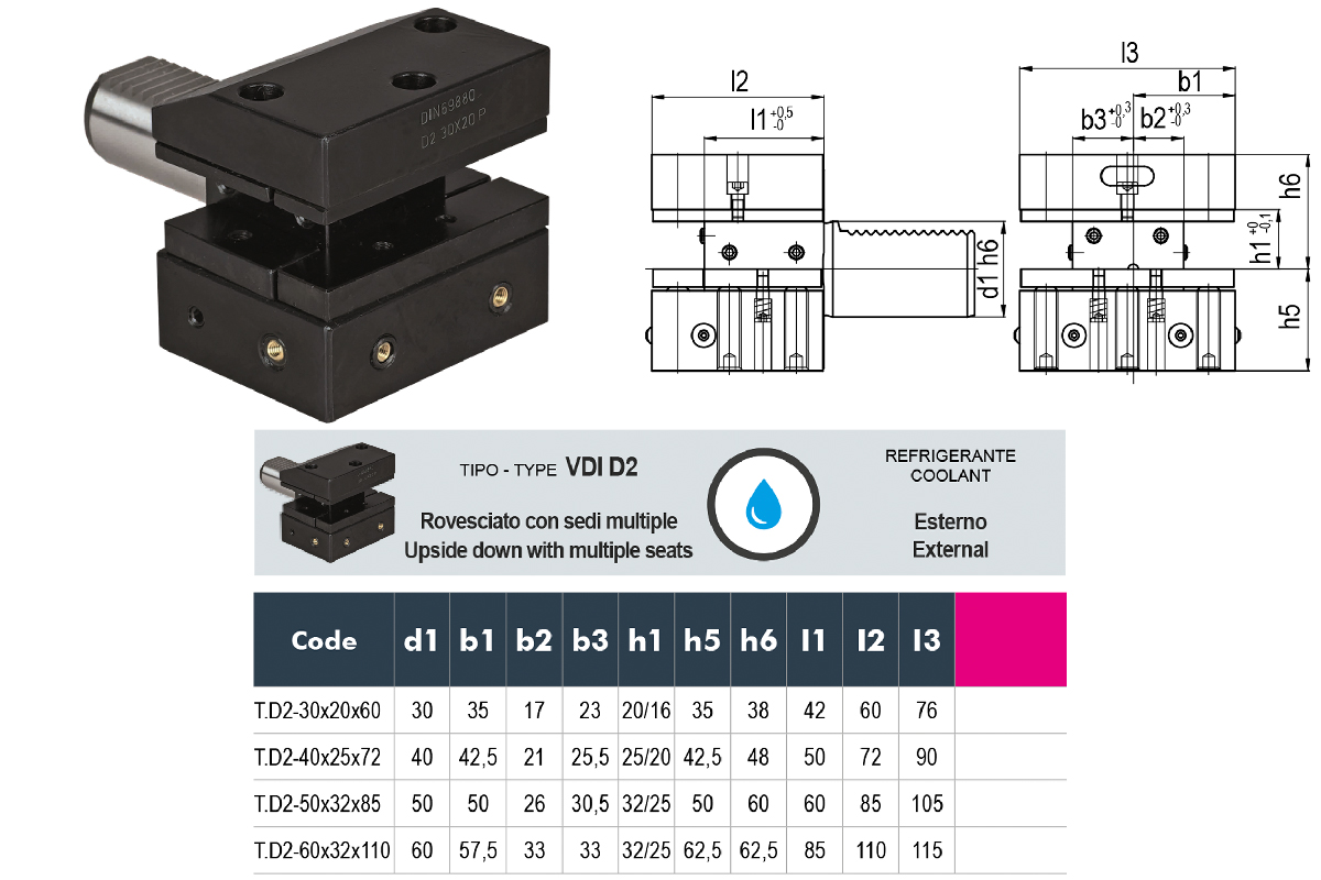 Характеристики товара: Резцедержатель VDI 3425 универсальный перевернутый D2-25х16x48 по DIN 69880 GERARDI