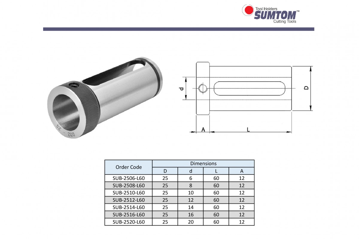 Характеристики товара: Втулка переходная с D25 на d16x60 для цилиндрического хвостовика SUMTOM