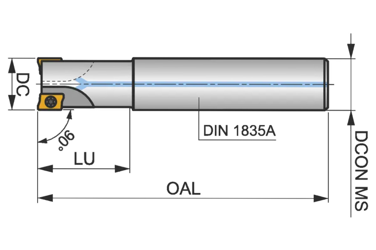 Описание товара: Фреза кінцева з охолодженням 10A2R016A12-SAD07D-C під пластину ADMX 0702.. PRAMET