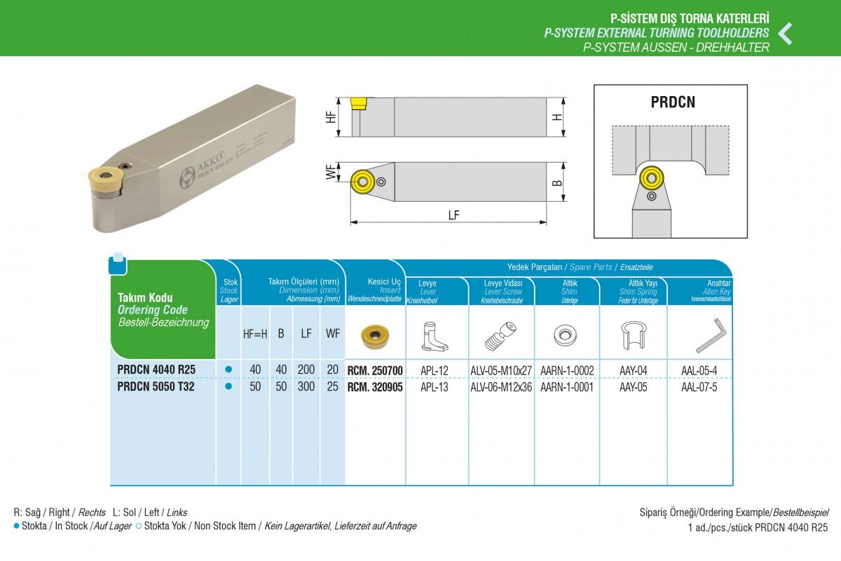 Характеристики товара: Різець токарний прохідний PRDCN 4040 R25 під пластину RCM. 2507.. державка AKKO