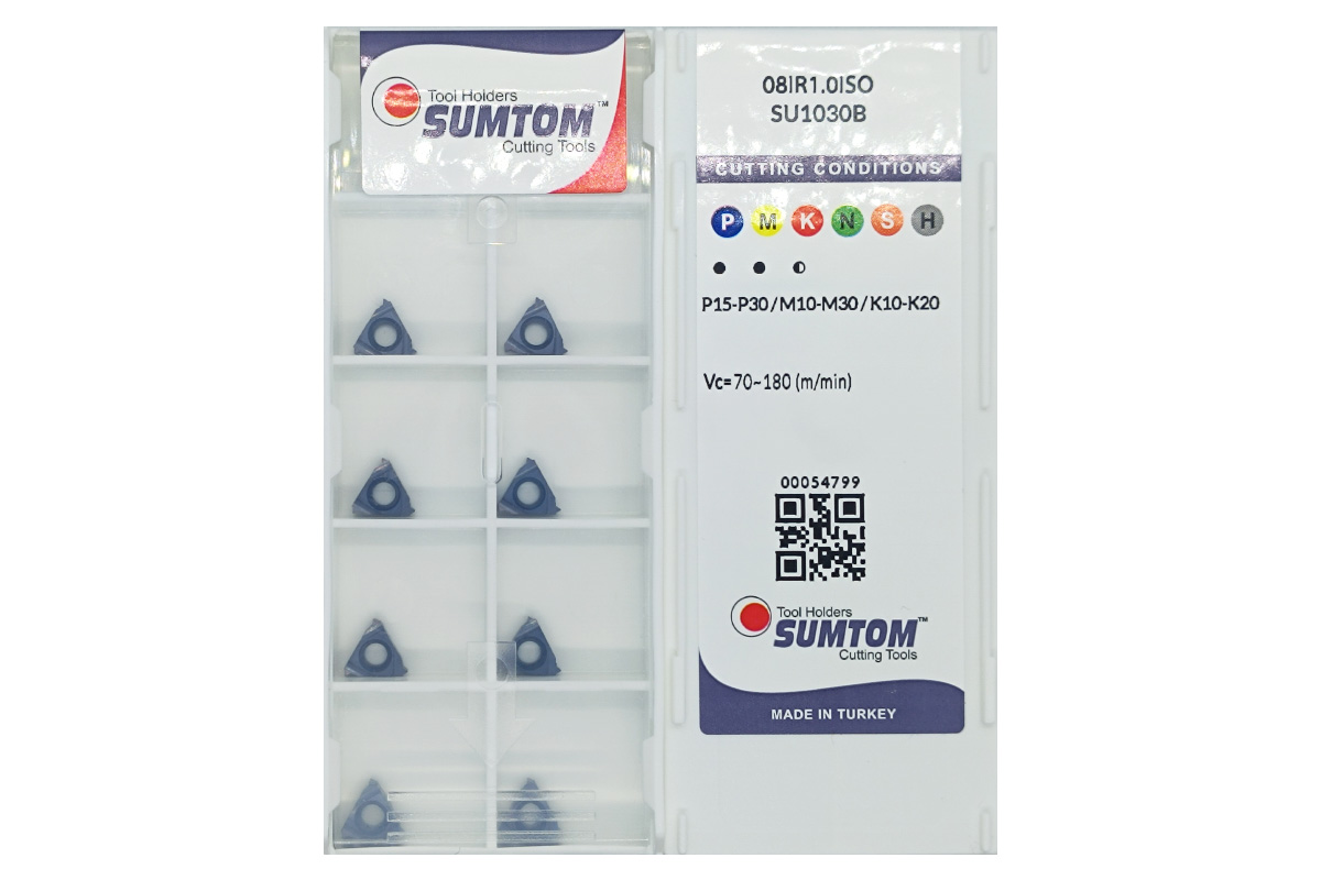 Описание товара: Твердосплавна пластина різьбова 08IR 1.0ISO SU1030B для внутрішньої різьби SUMTOM