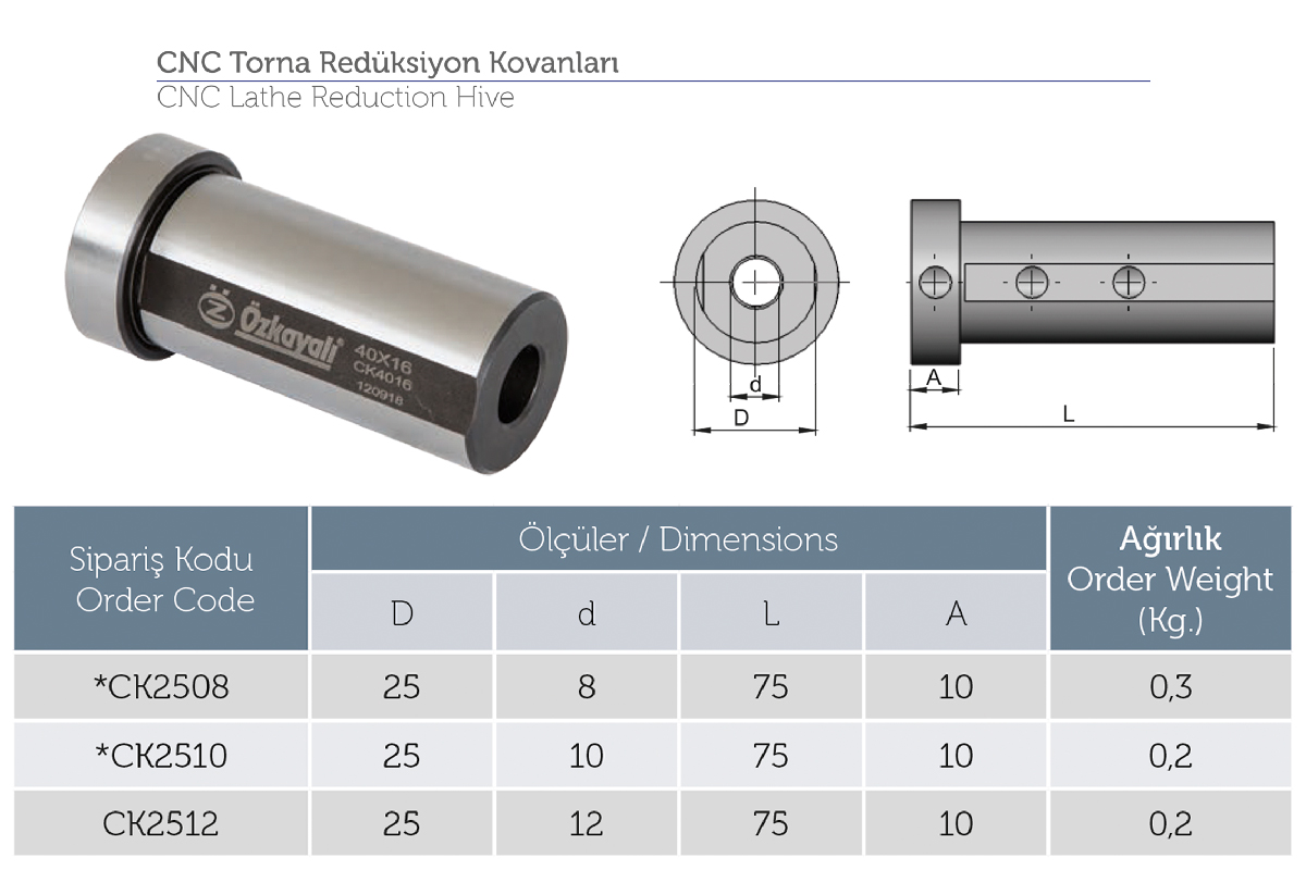 Описание товара: Втулка перехідна з D25 на d12x65мм до циліндричного хвостовика OZKAYALI