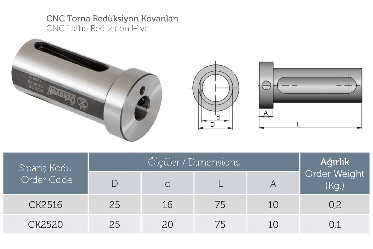 Описание товара: Втулка перехідна з D25 на d20x65мм до циліндричного хвостовика OZKAYALI