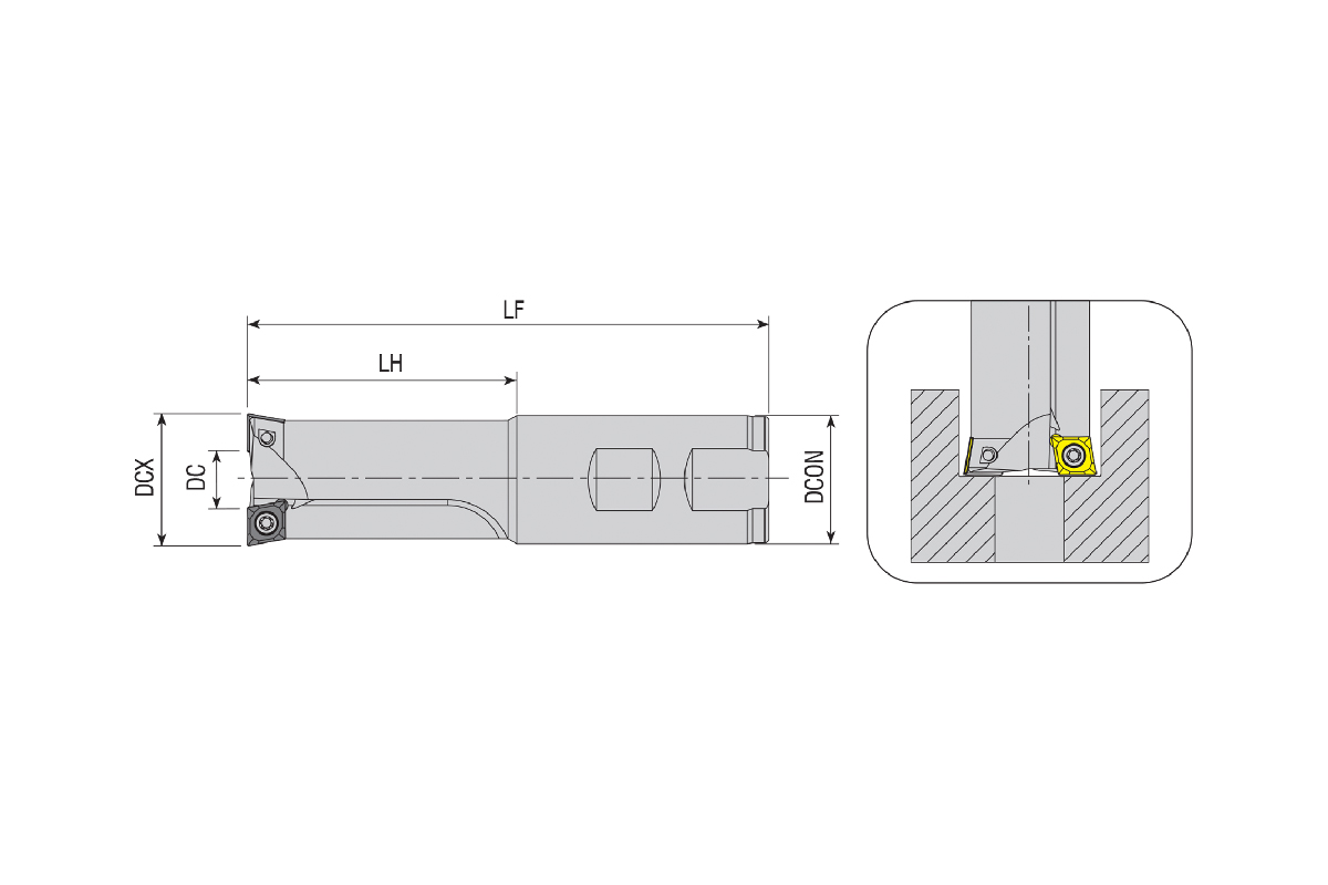 Характеристики товара: Фреза концевая зенковка ACBM-CC09-D30X12.5-W32-L130-Z02-H под пластину CCMT 09T3.. AKKO