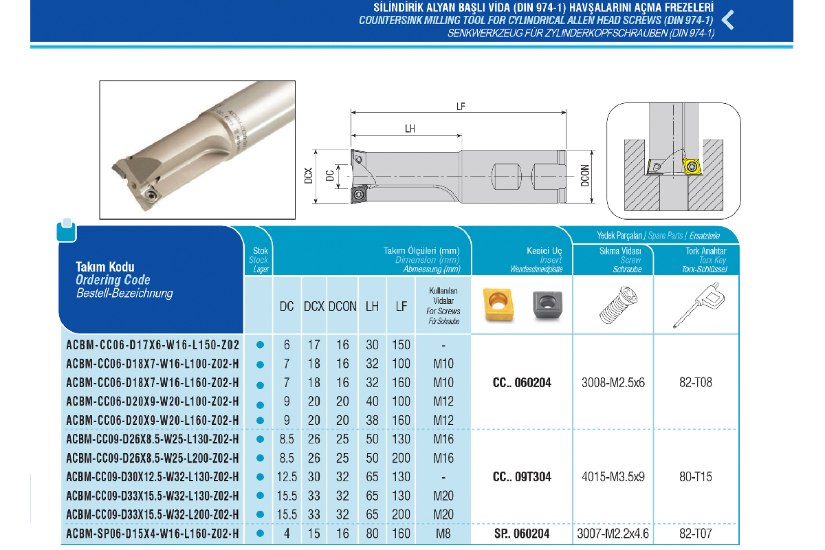Описание товара: Фреза концевая зенковка ACBM-CC09-D30X12.5-W32-L130-Z02-H под пластину CCMT 09T3.. AKKO