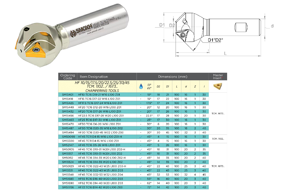 Фреза фасочная (зенковка) HF17.5 TC16 D17-24 W16 L100 Z01 под пластину TCM. 16T3.. SMOXH