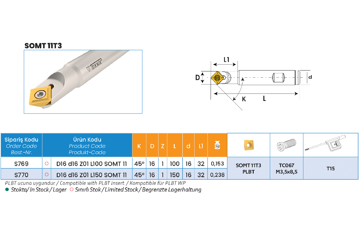 Характеристики товара: Фреза фасочная (зенковка) S769 D16 d16 Z01 L100 под пластину SOMT 11T3.. TEKNIK